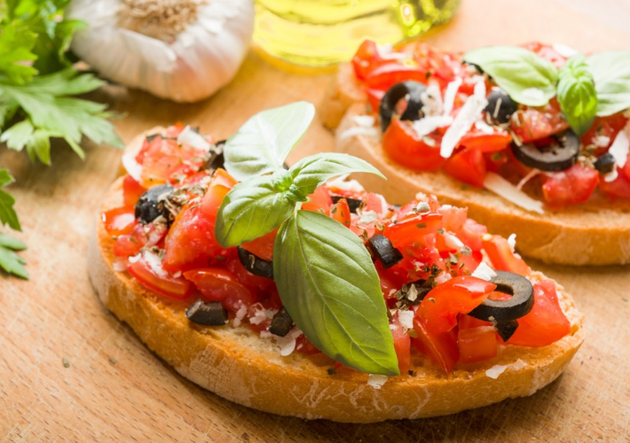 ?La Bruschetta nace como "plato pobre" creado por los campesinos italianos para aprovechar el pan duro y lograr que durara más para consumirlo. Ingredientes de excelencia como el aceite de oliva virgen extra y la sal de mar se utilizaron como conservantes y con el tiempo la Bruschetta se ha convertido en un ritual para acompañar aperitivos.