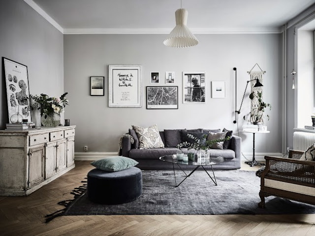 En el corazón de Linneo, Gotemburgo, en la vieja casa del cura, descubrimos este interior fantástico, compuesto por diferentes tonalidades de grises que se entremezclan con blancos rotos, envejecidos y muy sutiles toques de color que aportan flores, plantas y algún textil utilizado. Forma y color en armonÃa perfecta en un estilo nórdico vintage adorable. Desde su balcón orientado al sur, se puede disfrutar de un café caliente y escuchar cómo la ciudad cobra vida bajo sus pies. Una atmósfera con un tono decadente y algo 'deslabazado' en el que los muebles son las piezas protagonistas como el macramé colgado de la pared de aire étnico, el aparador recuperado y con ese aspecto envejecido... Una miscelánea perfecta entre lo nuevo y lo viejo, en una fusión armónica. El papel de la pared recorre los pasillos y el recibidor en una idea original y creativa a modo de jardÃn botánico, que decora la zona de circulación de la vivienda.